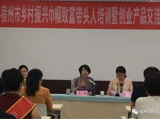 为全面贯彻落实省妇联 '乡村振兴巾帼行动'推进会会议精神,7月10日,宿州市妇联在安徽省妇联乡村振兴巾帼行动人才培训基地半汤乡学院召开全市乡村振兴巾帼致富带头人培训暨创业产品交流对接会议。